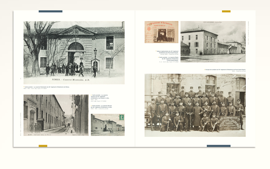 Les horreurs de la Seconde Guerre mondiale n’ont jamais effacé celles de la Première. Encore aujourd’hui, 1914-1918 reste la « Grande Guerre ». Pas seulement à cause des pertes énormes, mais sans doute aussi parce que, pour la première fois dans notre histoire, c’est toute la population française qui s’est trouvée impliquée pendant des années. Sur le front, ces « poilus » qui combattaient, qui mouraient, qui étaient blessés ou faits prisonniers, étaient paysans, ouvriers, instituteurs, étudiants. Ils étaient parfois poètes, comme Apollinaire, Péguy. Dans le Gard, un des départements les plus éloignés du front, chaque famille attendait des lettres et pleurait des morts, tout en faisant tourner une économie bouleversée, en accueillant les réfugiés de la zone des combats, en survivant malgré les restrictions et en trouvant encore de quoi financer les œuvres et emprunts de guerre. Dos carré cousu Rabats — 176 pages + 4 — 240X270 mm.