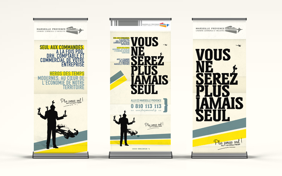 La CCIMP a mis en place un dispositif complet à destination des dirigeants de TPE. Un N° d’appel aux amplitudes larges,une base de données renouvelée, un site Internet boîte à outils et une équipe dédiée, une offre riche de formations, de plan d’accompagnement, de rendez-vous. Avec la CCIMP vous ne serez plus jamais seul ! Affiches, carte postale, carte membre, stylo, stickers, banners, bloc note, voiture miniature… Une création inspirée de le série The Prisoner et de sa Super 7.