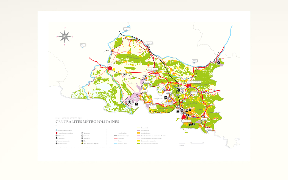 Projet à l’initiative du Club TOP 20 Marseille Provence, avec l’appui de la CCI Marseille Provence, de la CCI du Pays d’Arles et de l’UPE 13. Neuf mois d’enquêtes, plusieurs ateliers de travail et une soixantaine d’entretiens avec des experts, élus, chefs d’entreprises et partenaires sociaux, auront été nécessaires à Yves Cousquer et Jean-Bernard de Cérou, mandatés part le Club Top 20, pour livrer leur vision de la métropole marseillaise de demain. Un document qui entend s’opposer à la « vision monolithique de la métropole centralisatrice », en s’appuyant sur un « archipel métropolitain » riche de territoires spécifiques et complémentaires. Son périmètre ? Le département des Bouches-du-Rhône. L’horizon ? 2030…