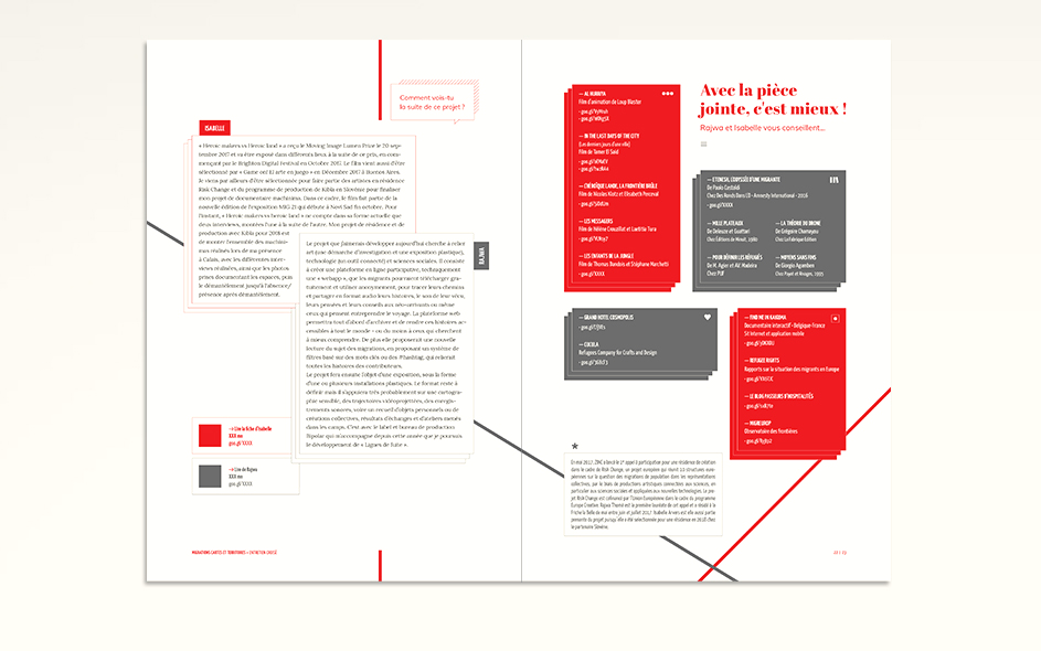 Avec Marylou Bonnaire et l’équipe de Zinc nous avons commencé à travailler sur une Revue. Les buts poursuivis étaient multiples. Unifier la communication de Zinc, mettre en musique toute son action, toute sa contribution à la marche du monde ;-) et retrouver en un seul objet central l’ensemble des activités, des actualités et la force créatrice de l’association. Cette revue devait permettre de prolonger les idées développée sur le terrain par les équipes de Zinc, les artistes et les chercheurs. Cette idée de Revue, de brand content devait se retrouver dans le nouvel outil web que vous retouverez aussi en fin de présentation. Projets non aboutis mais que je tenais à vous présenter.